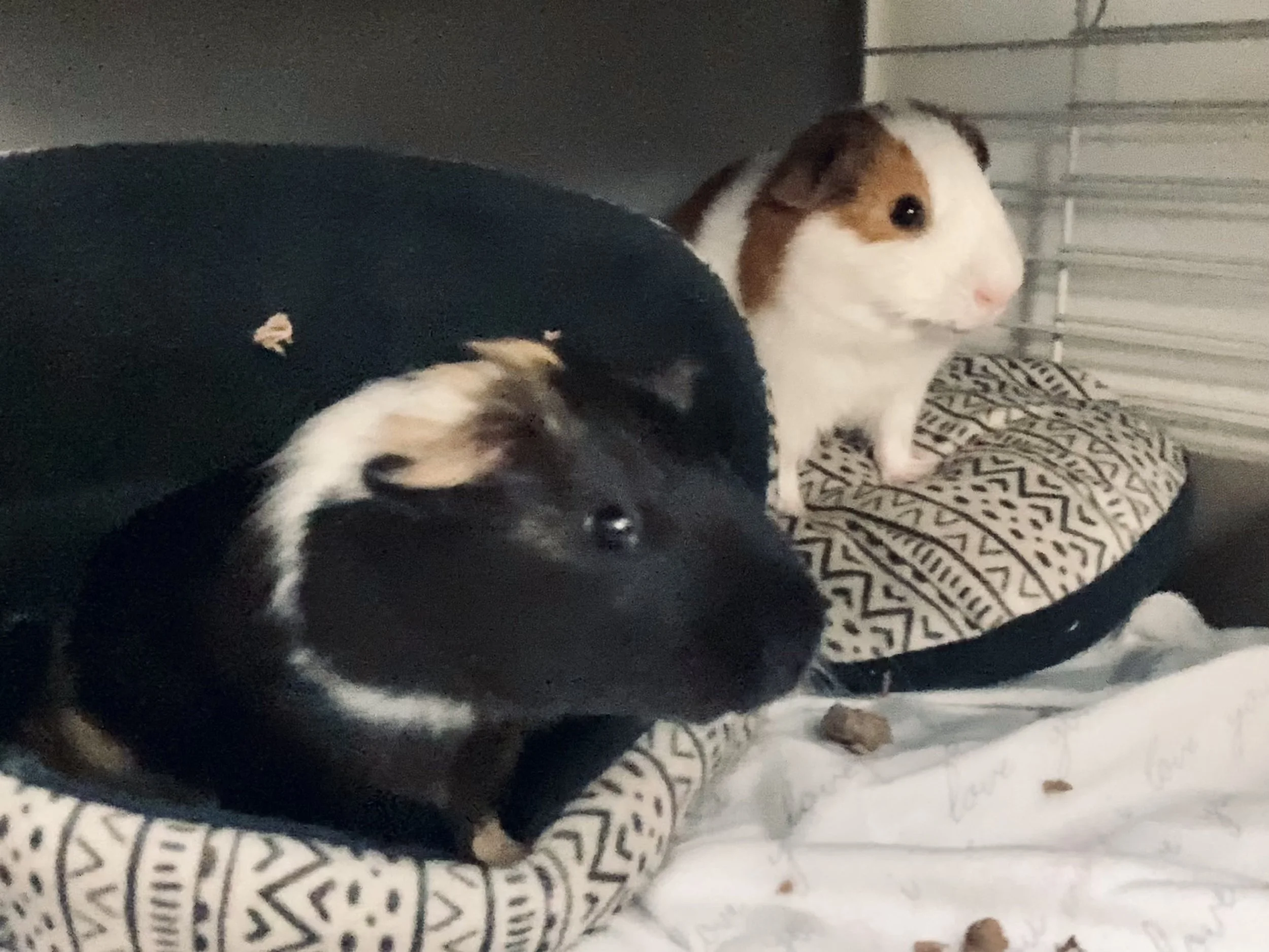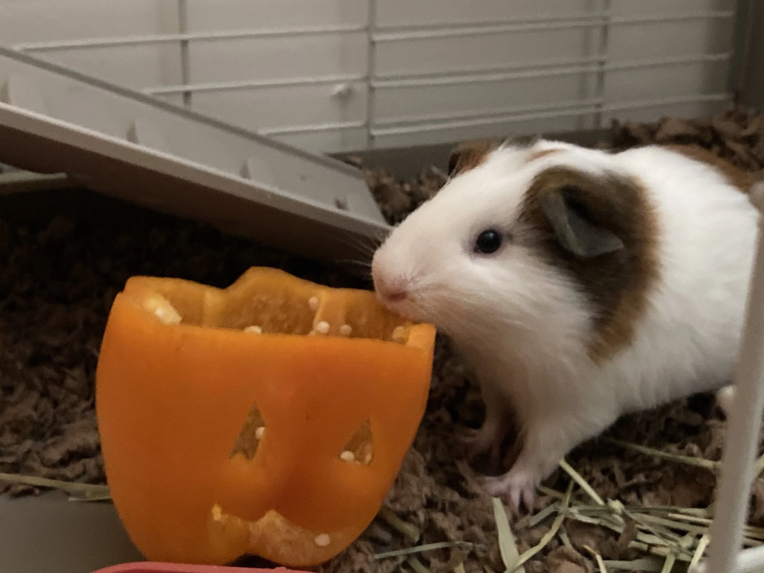 Peanut and Jelly, my 2 pet guinea pigs, devouring a bell pepper.